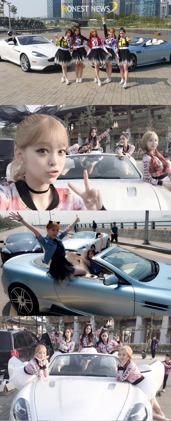 공개된 사진속에는 애스턴마틴 라피드S(검정). DB9 볼란테(흰색), DB9 볼란테 만소리(파란) 총 3대의 차량을 배경으로 트랜디 멤버 5명이 제각각 사진포즈를 취하고 있다.